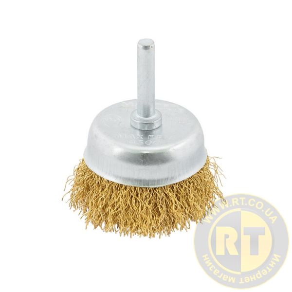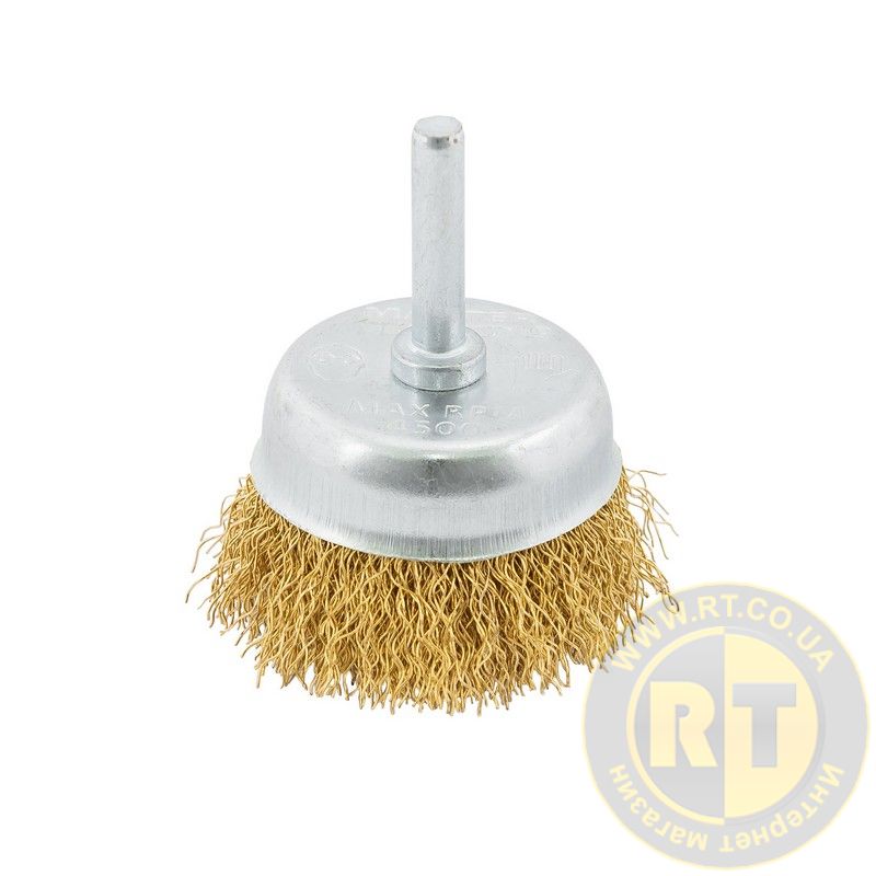 Щітка торцева з латунованого рифленого дроту Ø 50 мм зі стрижнем ¼" MASTERTOOL 19-7405