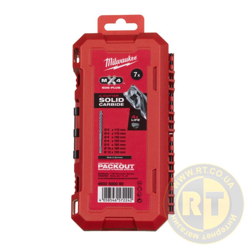Набір бурів PACKOUT SDS-PLUS MX4 MILWAUKEE Set 1, (5-12мм) (7шт)