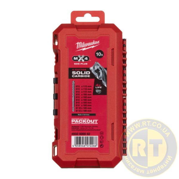 Набір бурів PACKOUT SDS-PLUS MX4 MILWAUKEE Set 3, (5-12мм) (10шт)