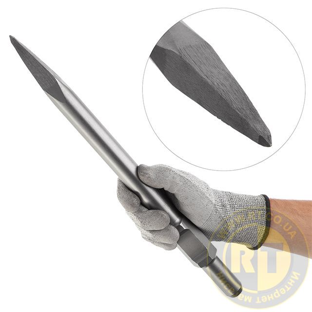 Зубило списоподібне INTERTOOL призначене для демонтажних робіт та буріння міцних абразивних матеріалів, таких як цегла, бетон, піноблок, камінь тощо. Використовуються з відбійними молотками.