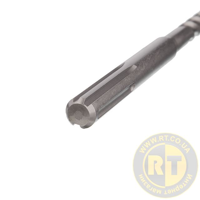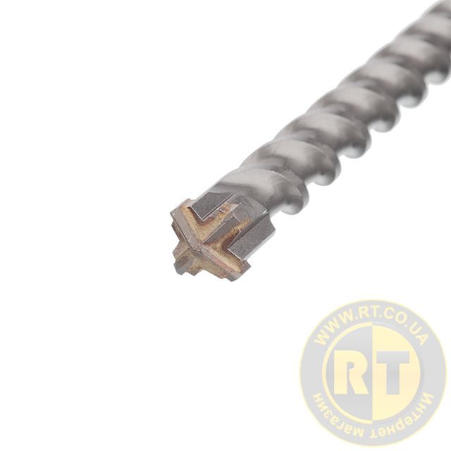 Твердосплавний наконечник з чотирма різальними гранями забезпечує легкий початок свердління та підвищену точність, що особливо важливо для центрування та запобігання ковзанню інструмента в початковій фазі свердління. Спіральна різальна частина ефективно виводить пил з робочого простору, мінімізуючи теплову дію, що важливо для довговічності бура та якості виконаних отворів.