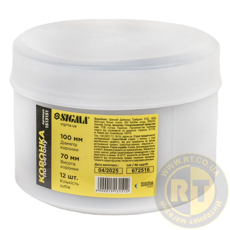 Коронка по бетону Ø100×70мм 12 зубців (тубус) SIGMA 1513151