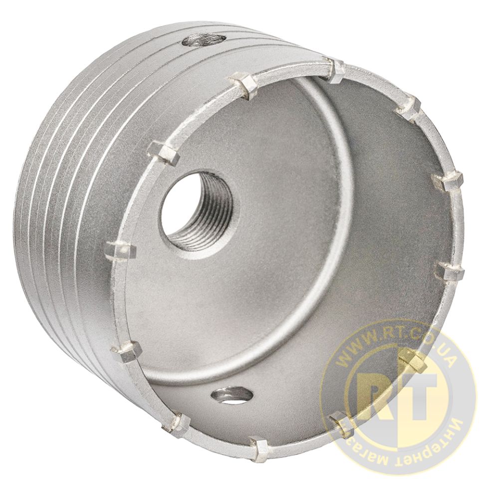 - Спеціальна спіралеподібна форма корпусу коронки зменшує тертя об стінки отвору, прискорює відведення шламу та підвищує термін служби інструменту.