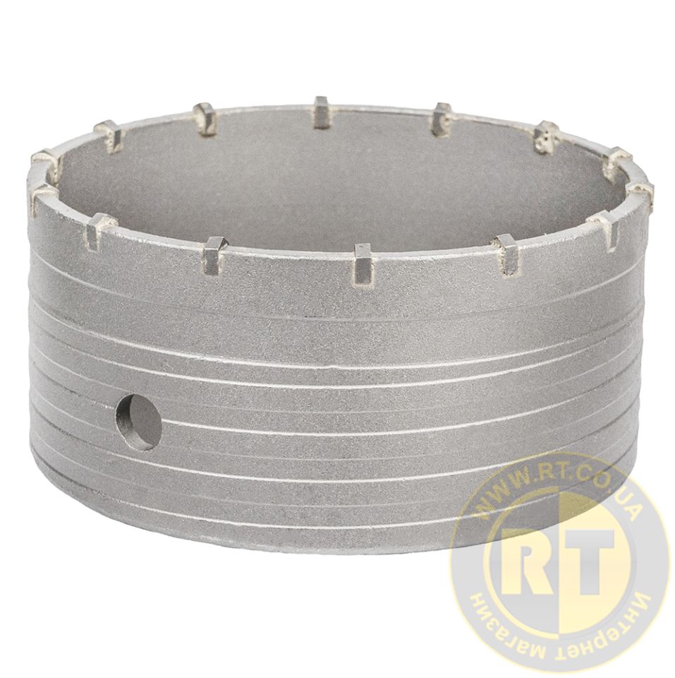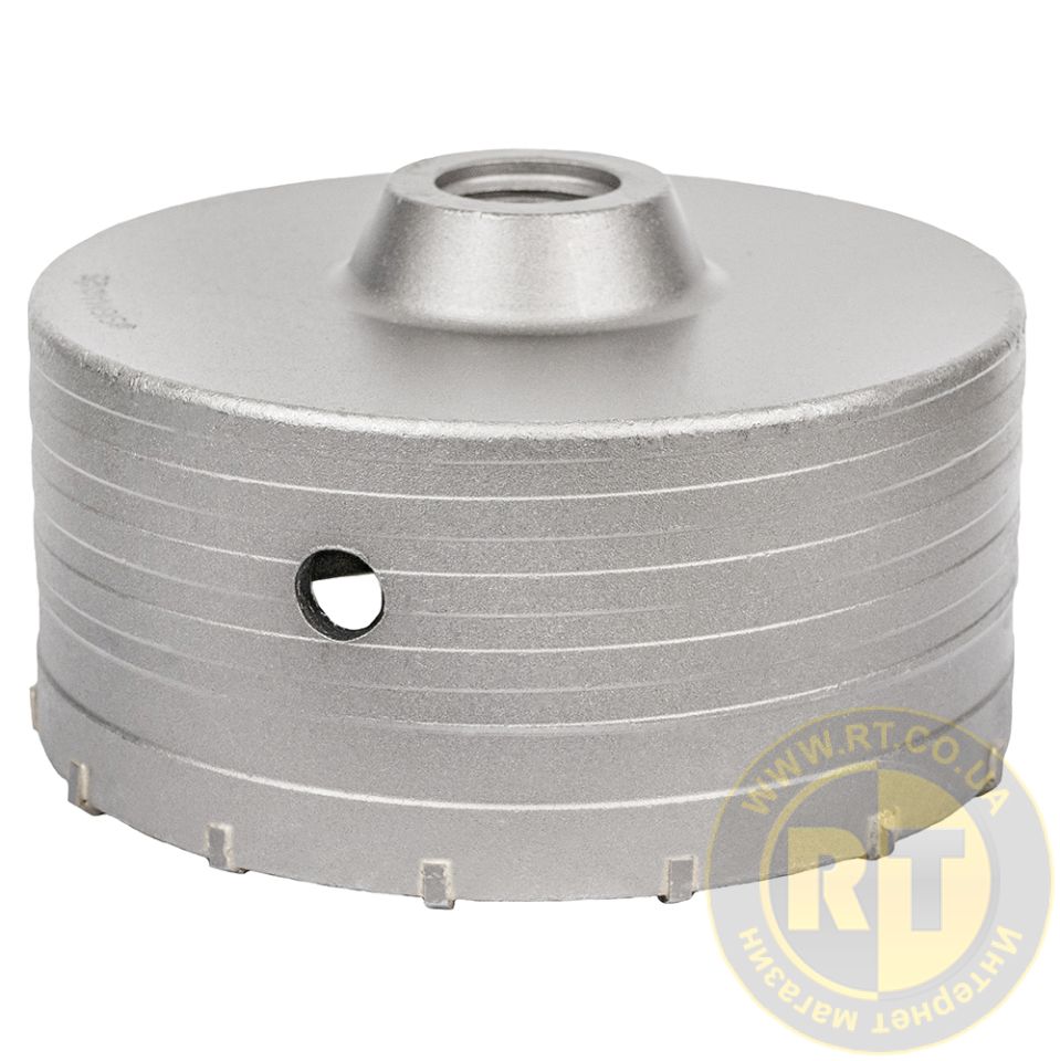 - Спеціальна спіралеподібна форма корпусу коронки зменшує тертя об стінки отвору, прискорює відведення шламу та підвищує термін служби інструменту.