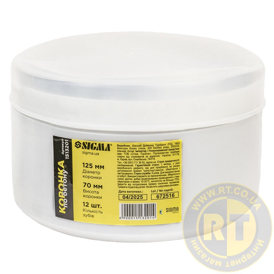 Коронка по бетону Ø125×70мм 12 зубців (тубус) SIGMA 1513201