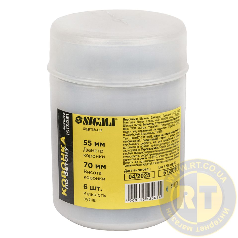 Коронка по бетону Ø55×70мм 6 зубців SIGMA 1513061