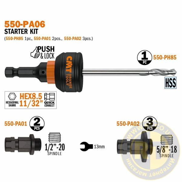 Набір свердло та адаптери для коронок 11-150 мм CMT 550-PA06