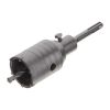 Коронка Ø50 оснащена твердосплавними зубами у кількості 6 шт. Завдяки такій конструкції має високу стійкість до зносу та довго зберігає свою гостроту. Твердосплавні зубці мають високу твердість HRC 90, легко проникають у тверді матеріали, забезпечуючи більш ефективне та швидке буріння.