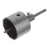 Коронка Ø80 мм оснащена твердосплавними зубами у кількості 10 шт. Завдяки такій конструкції має високу стійкість до зносу та довго зберігає свою гостроту. Твердосплавні зубці мають високу твердість HRC 90, легко проникають у тверді матеріали, забезпечуючи більш ефективне та швидке буріння.