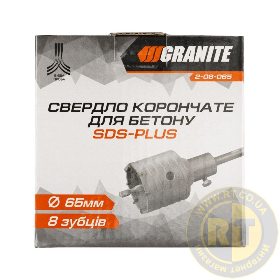 Корончате свердло для бетону 65 мм 8 зубців із хвостовиком 22*110 мм SDS-PLUS GRANITE призначене для високоефективного свердління отворів у твердих будівельних матеріалах. Завдяки своїм характеристикам та використанню передових технологій цей свердло стане незамінним інструментом як для професійних будівельників, так і для домашніх майстрів. Свердло корончате для бетону 65 мм 8 зубців із хвостовиком 22*110 мм SDS-PLUS GRANITE – це вибір професіоналів, які цінують якість та ефективність у своїй роботі. Забезпечте себе надійним інструментом від GRANITE для швидкого та точного свердління! • ударне свердління отворів великого діаметру в граніті, бетоні, клінкері, камені, кам'яній кладці, керамічній плитці, мармурі, керамограніті