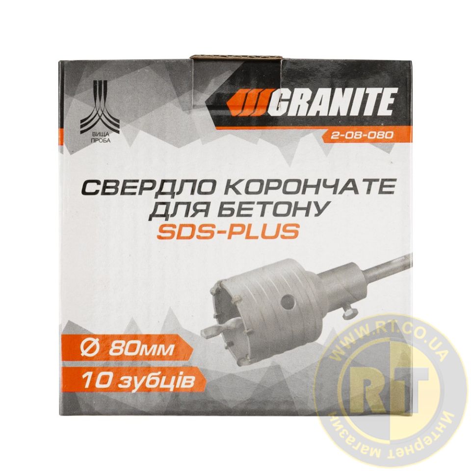Корончате свердло для бетону GRANITE діаметром 80 мм з 10 зубцями та хвостовиком SDS-PLUS розміром 22*110 мм – це надійний інструмент для професійного свердління великих отворів у твердих будівельних матеріалах, таких як бетон, цегла та камінь. Корончате свердло для бетону GRANITE діаметром 80 мм з 10 зубцями та хвостовиком SDS-PLUS ідеально підходить для створення великих отворів у будівельних та ремонтних роботах. Відмінно підходить для монтажу трубопроводів, вентиляційних систем, електропроводки та інших конструкцій у твердих матеріалах. • ударне свердління отворів великого діаметру у граніті, бетоні, клінкері, камені, кам'яній кладці, керамічній плитці, мармурі, керамограніті.