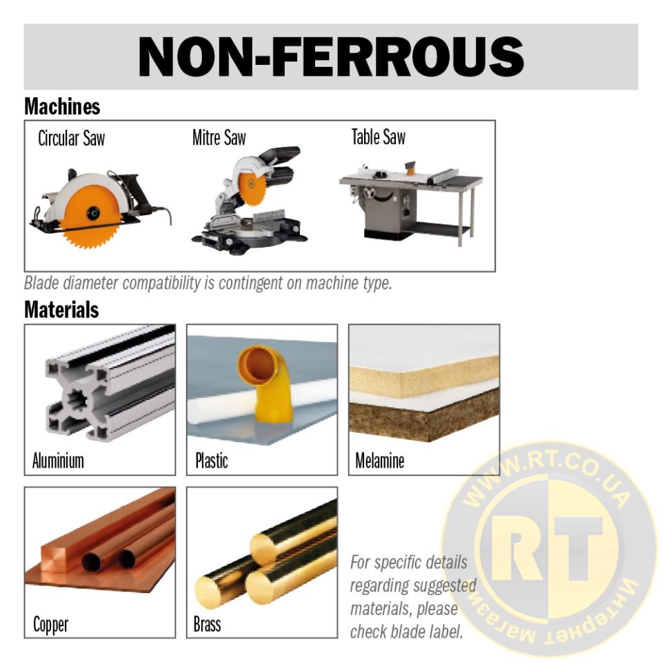 Призначення пильног дискаАлюміній/Кольорові метали/ДСП/ЛДСП/Композитні матеріали/Пластик