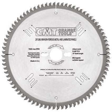 Пилки для кольорових металів компанії CMT ідеальні для торцювальних пилок. Оптимальні для робіт з алюмінію, міді, інших матеріалів що не містять заліза. Основною особливістю є висока ударна в'язкість зубів зі спеціального сплаву. Негативний угол врізання -6° дозволяє контролювати процес пиляння і залишати гладкі акуратні краї заготовки без застрягання тонких деталей. Спеціальна конструкція пазух для ефективного видалення стружки.