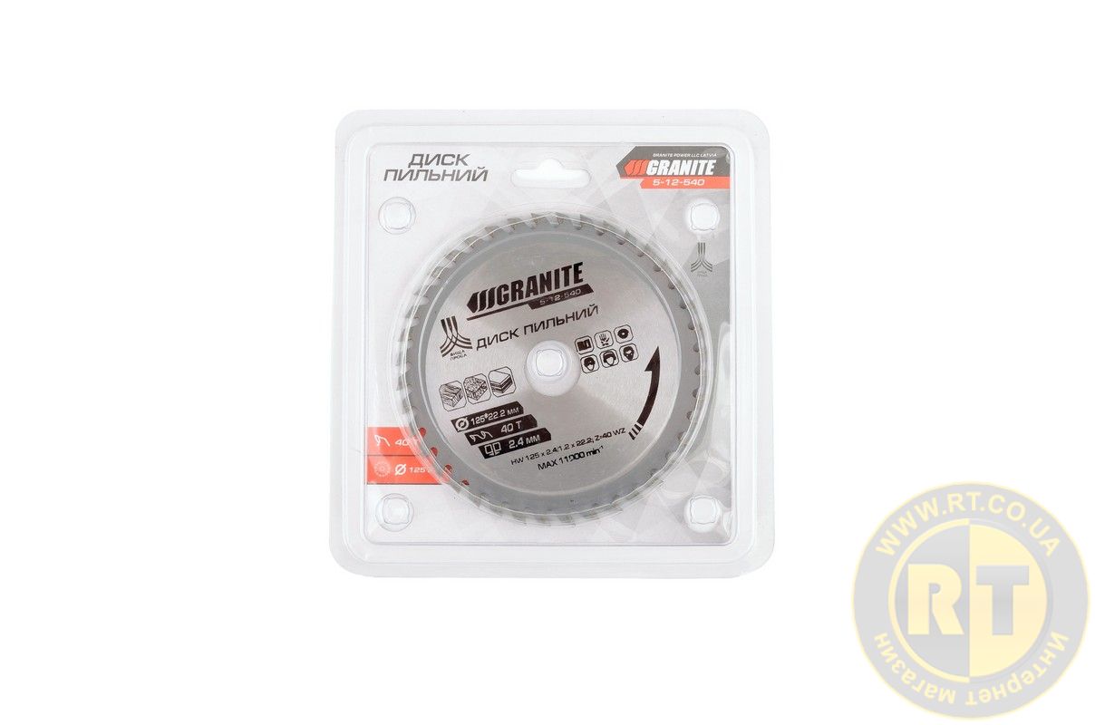 Диск пильний для дерева з твердосплавними напайками 125х22.2х40Т 12000 об/хв MASTERTOOL 5-12-540