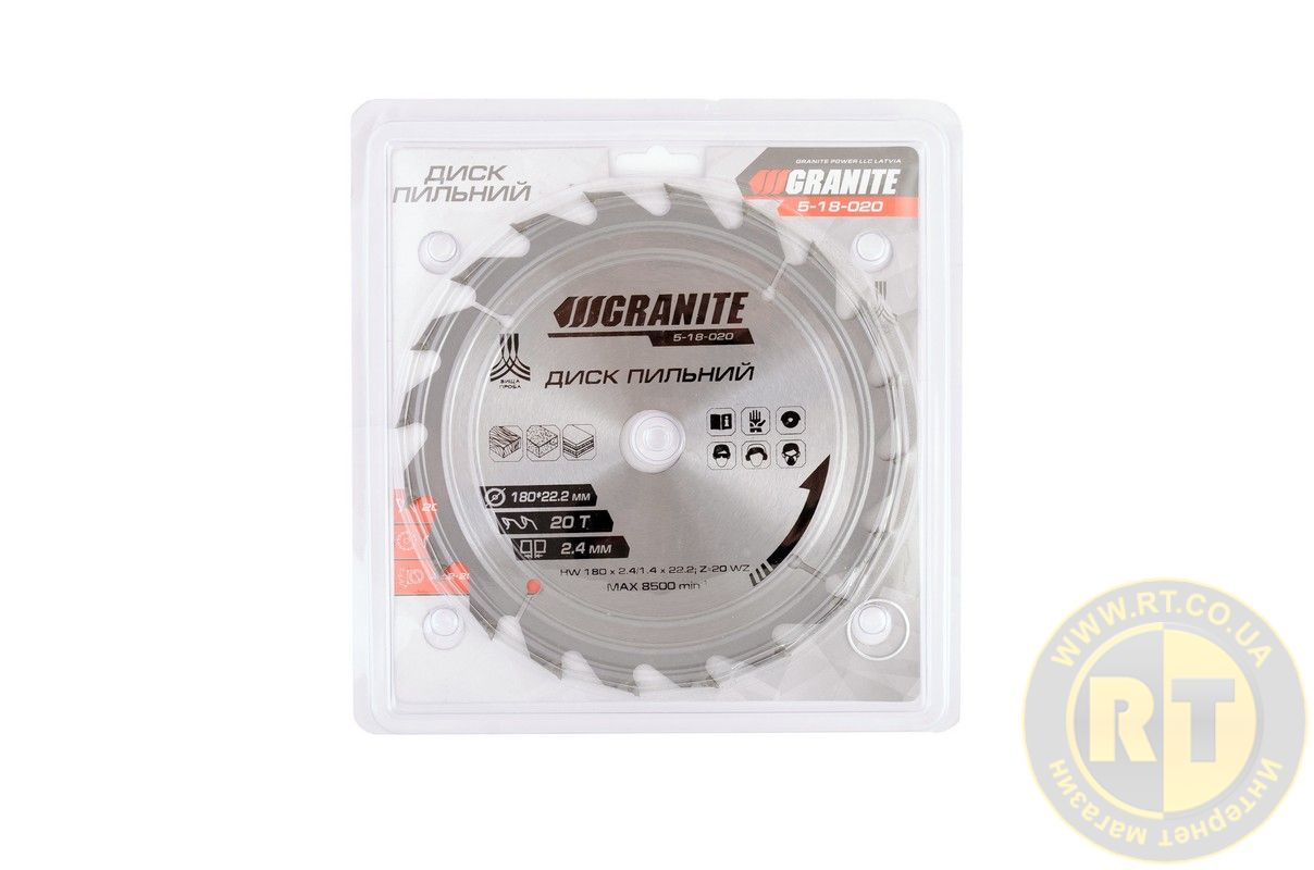 Диск пильний для дерева з твердосплавними напайками 180х22.2х20Т адаптер 22.2-20 8400 об/хв MASTERTOOL 5-18-020