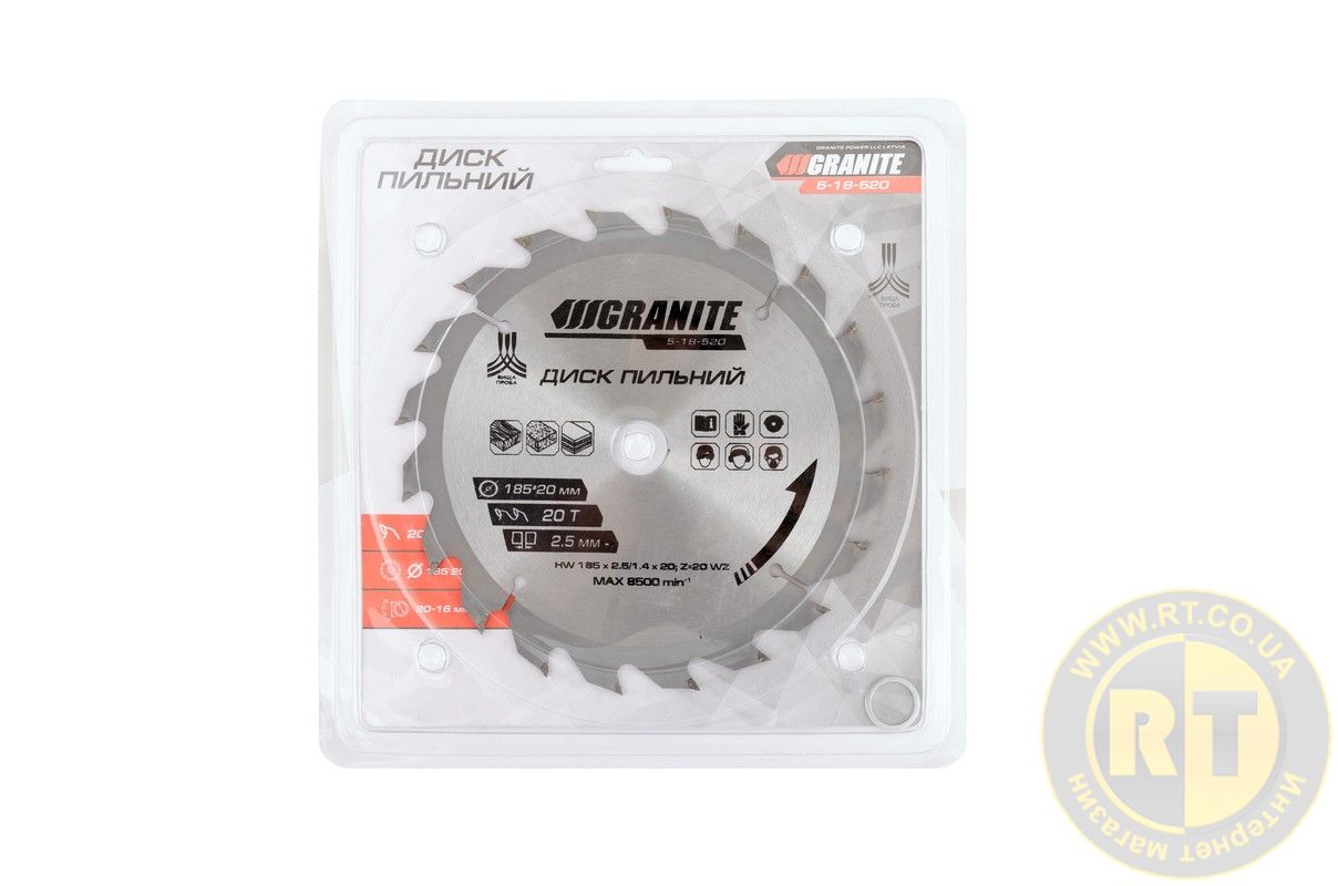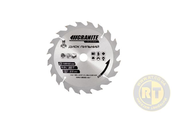 Диск пильний для дерева з твердосплавними напайками 185х20х20Т адаптер 20-16 8200 об/хв MASTERTOOL 5-18-520
