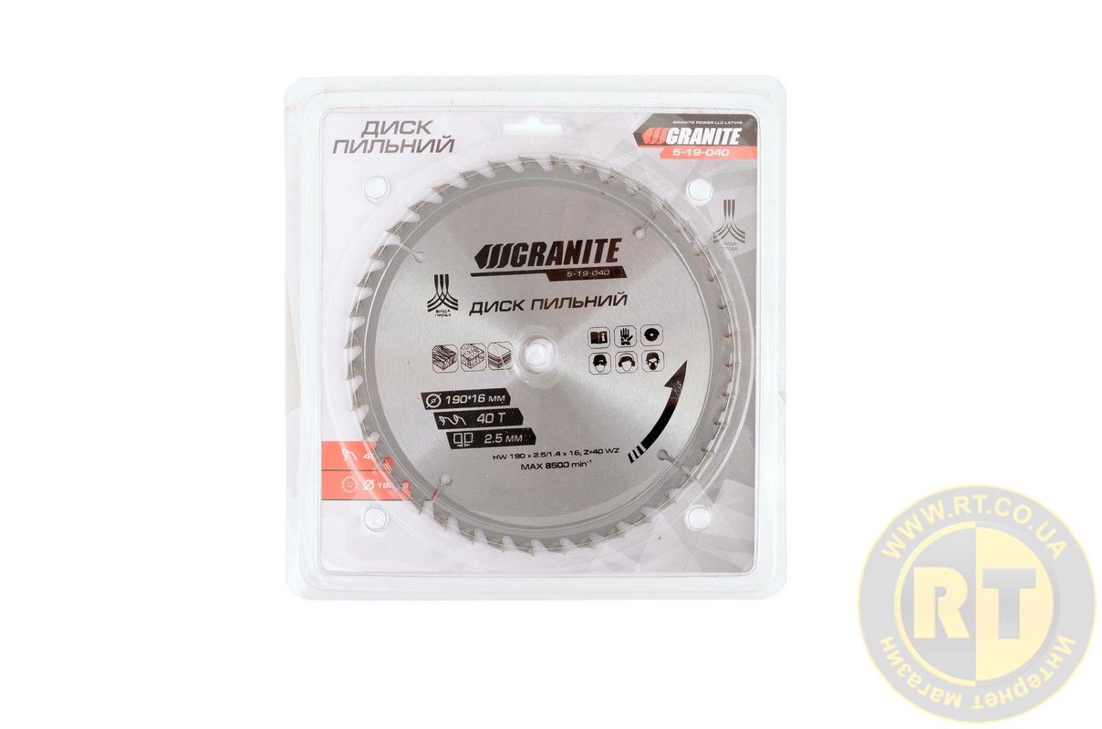 Диск пильний для дерева з твердосплавними напайками 190х16х40Т 8000 об/хв MASTERTOOL 5-19-040