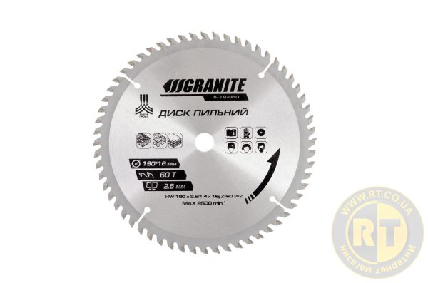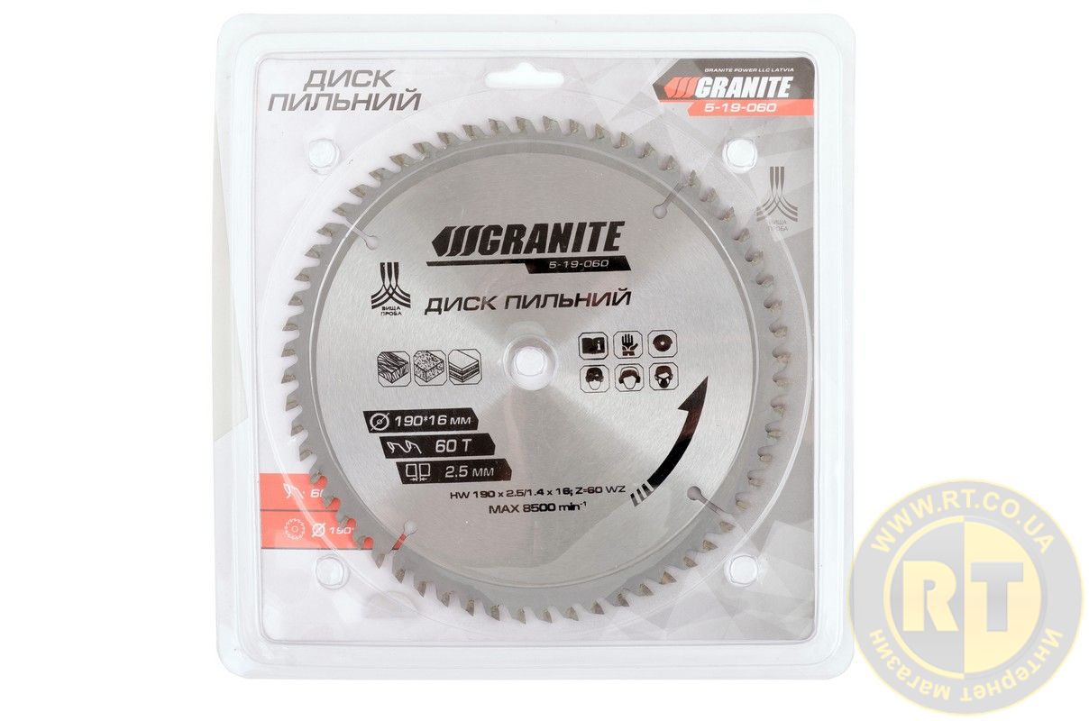 Диск пильний для дерева з твердосплавними напайками 190х16х60Т 8000 об/хв MASTERTOOL 5-19-060