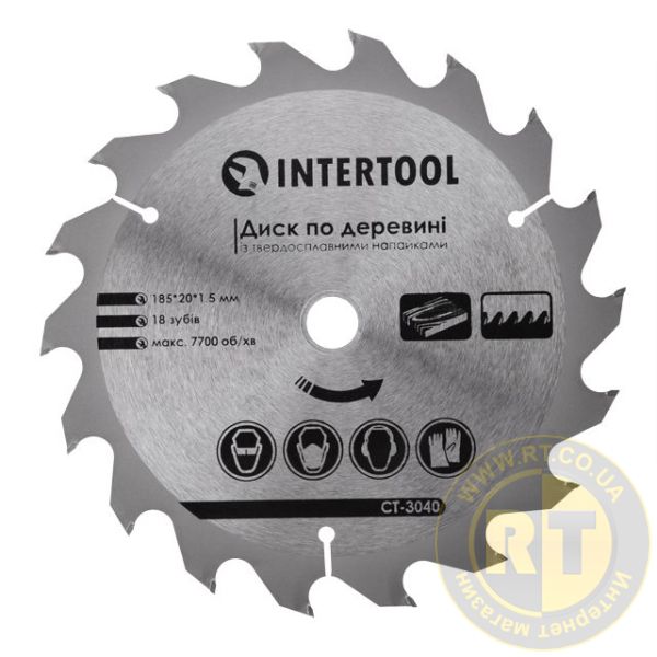 Диск по деревині, з твердосплавними напайками, 185×20×1,5 мм, 18 зубів, 7700 об/хв INTERTOOL CT-3040
