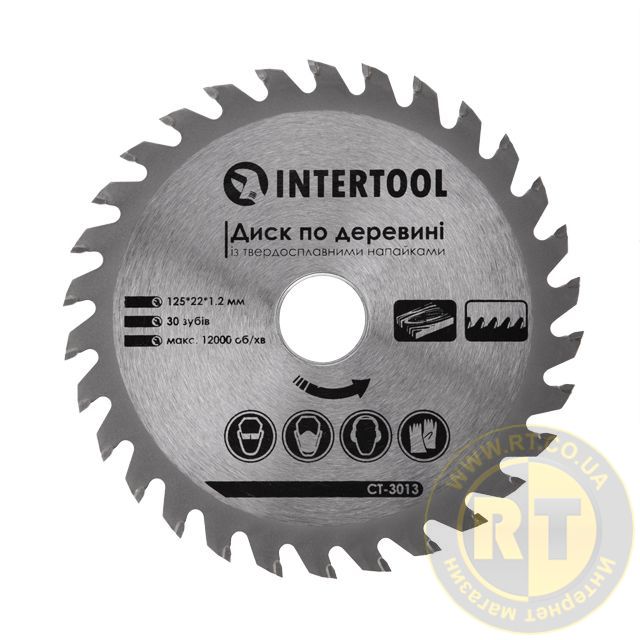 Диск по деревині, з твердосплавними напайками, 125×22,2×1,2 мм, 30 зубів, 12000 об/хв INTERTOOL CT-3013