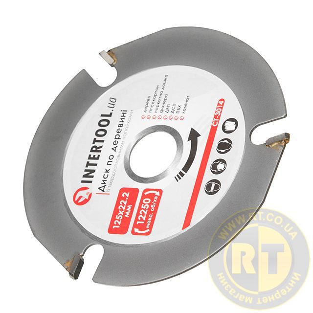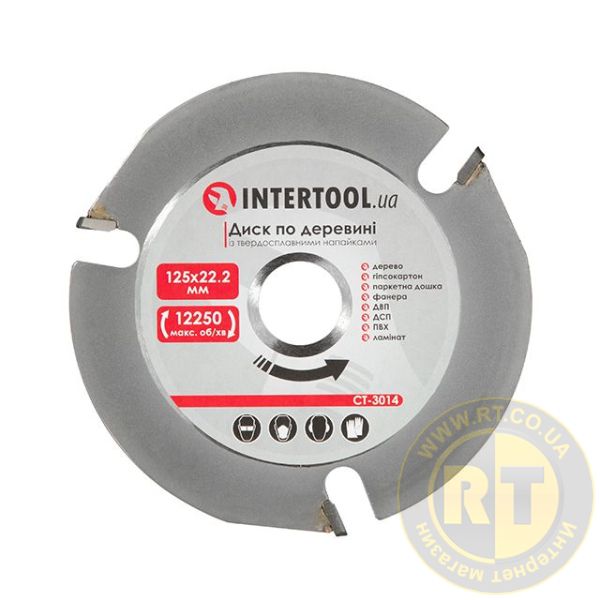 Диск по деревині, з твердосплавними напайками, 125×22,2×2,0 мм, 3 зуби, 12250 об/хв INTERTOOL CT-3014
