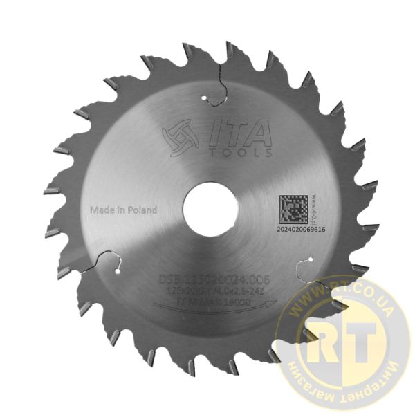 DSB.Підрізна пила D=125 F=20 Z=24 K=3,0/4,0 P=2,5 H=6 ITA TOOLS DSB.125020024.006