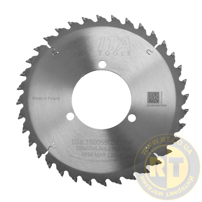 DSB.Підрізна пила D=160 F=55 Z=36 K=4,4/5,2 P=3,2 H=4 PH: 3/7/66 ITA TOOLS DSB.160055036.004