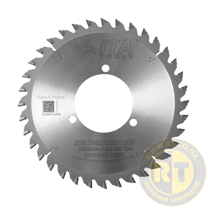 DSB.Підрізна пила D=160 F=55 Z=36 K=4,4/5,5 P=3,2 H=6 PH: 3/7/66 ITA TOOLS DSB.160055036.006