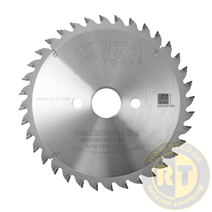 DSB.Підрізна пила D=180 F=30 Z=36 K=4,4/5,5 P=3,2 H=6 PH: 2/10/60 ITA TOOLS DSB.180030036.006