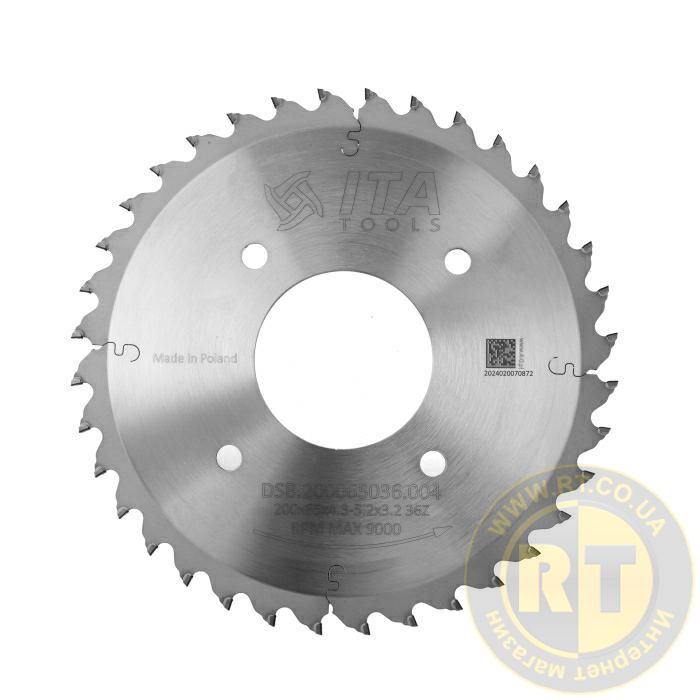 DSB.Підрізна пила D=200 F=65 Z=36 K=4,4/5,2 P=3,2 H=4 PH: 2/9/100+2/9/110+2/14/110 ITA TOOLS DSB.200065036.004