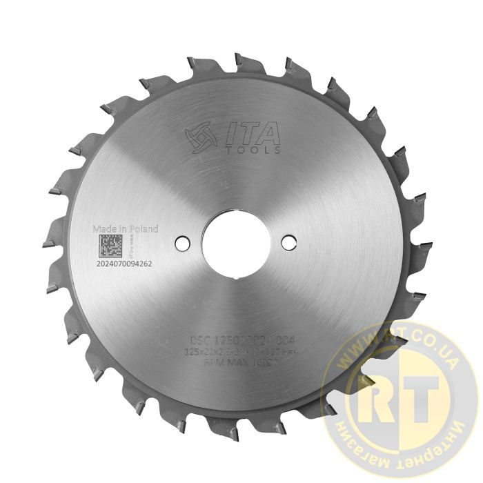 DSC.Підрізна пила D=125 F=22 Z=12+12 K=2,8-3,6 P=2,2 H=4 ITA TOOLS DSC.125022024.004