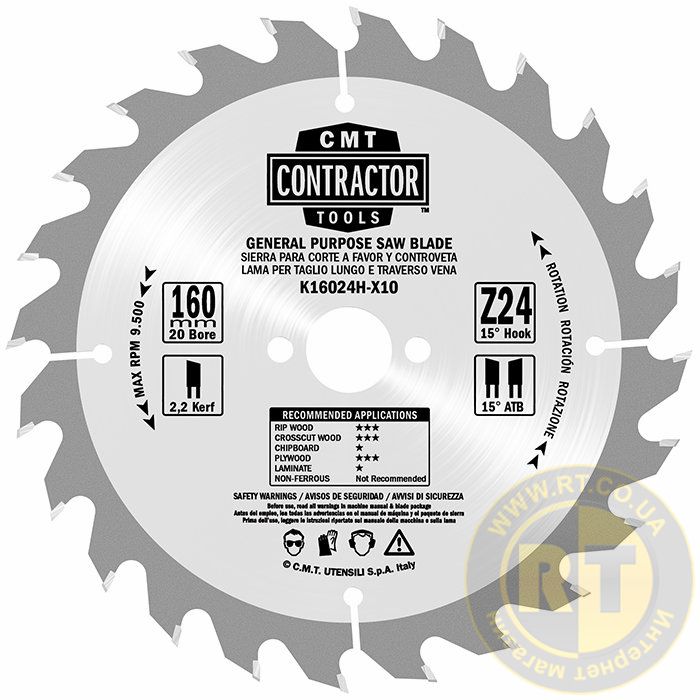 Пила D=160 K=2,2/1,4 F=20 Z=24 ATB CMT K16024H-X10