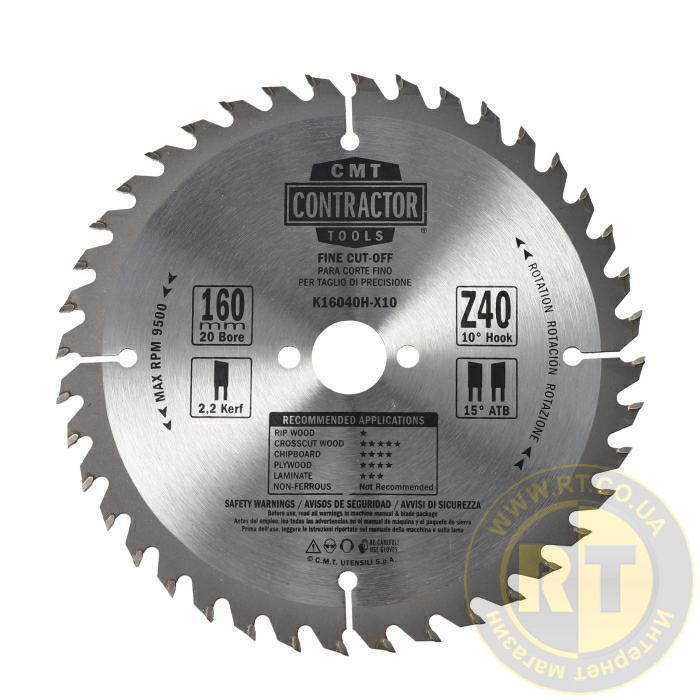 Пила D=160 K=2,2/1,4 F=20 Z=40 ATB CMT K16040H-X10