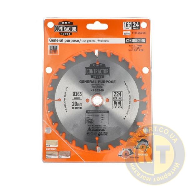 Пила серії CONTRACTOR® 165x20x24 для поперечного та поздовжнього розпилу.