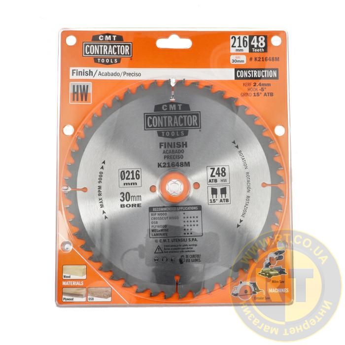 Пила D=216 K=2,4/1,6 F=30 Z=48 ATB CMT K21648M