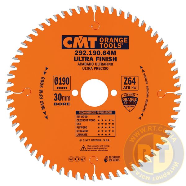Пиляльні диски CMT 292-ї серії використовують на ручних дискових, акумуляторних та торцювальних пилках. Завдяки великій кількості перемінно-скошених зубів і куті врізання, дані диски ідеально підходять для поперечного різу твердої та м'якої деревини. Диск чудово підходить як для автоматичної, так і ручної подачі на малій швидкості. Оснащення додатковими відверстиями для кріплення на більшості інструментів