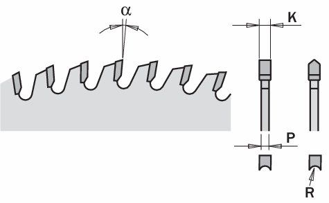 Тип заточування зубів/Кут нахилу задньої поверхні пильного диска βХДФ