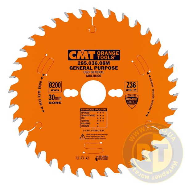 Поєднання середньої кількості перемінно-скошених зубів, і кута врізання роблять цей пильний диск 285-ї серії, ідеальним для акуратного та ефективного розпилювання твердої та м'якої деревини, фанери, деревопохідних матеріалів, як вдовж, так і впоперек. Оснащені відверстиями для встановлення на інструмент різних виробників. Підходити для використання на ручних дискових, акумуляторних та торцювальних пилках.