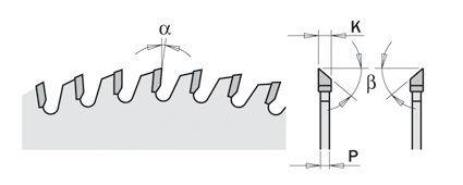 Тип заточування зубів/Кут нахилу задньої поверхні пильного диска β40° Hi-ATB