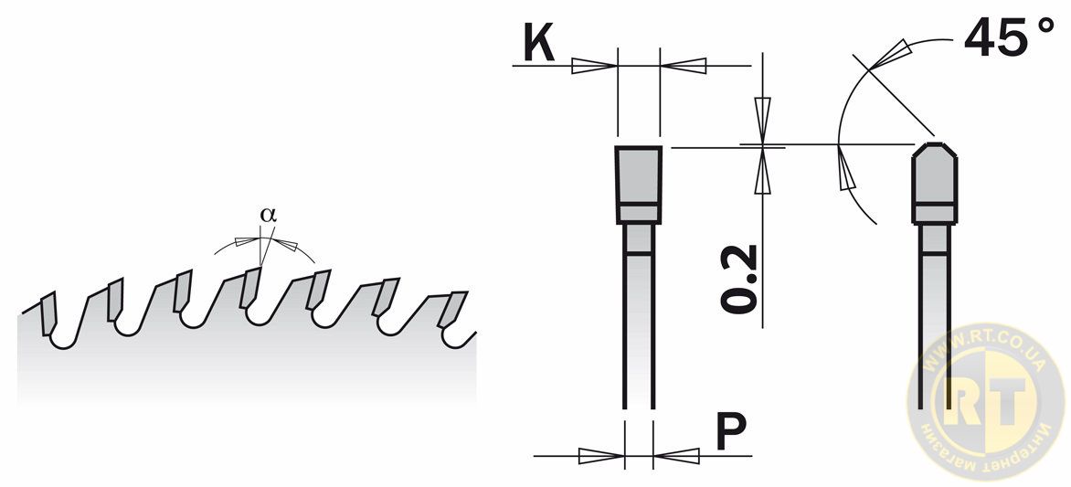 Тип заточування зубів/Кут нахилу задньої поверхні пильного диска βТСЖ