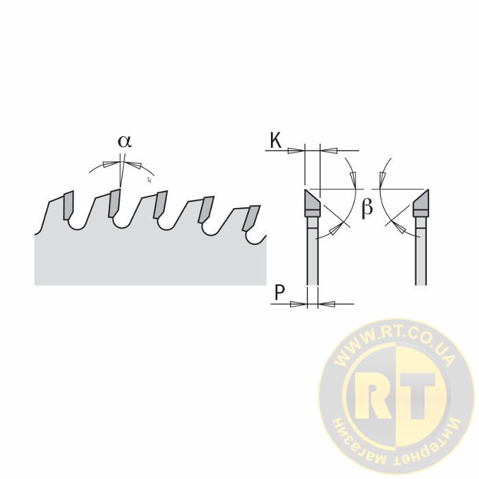 Тип заточування зубів/Кут нахилу задньої поверхні пильного диска β38° Hi-ATB