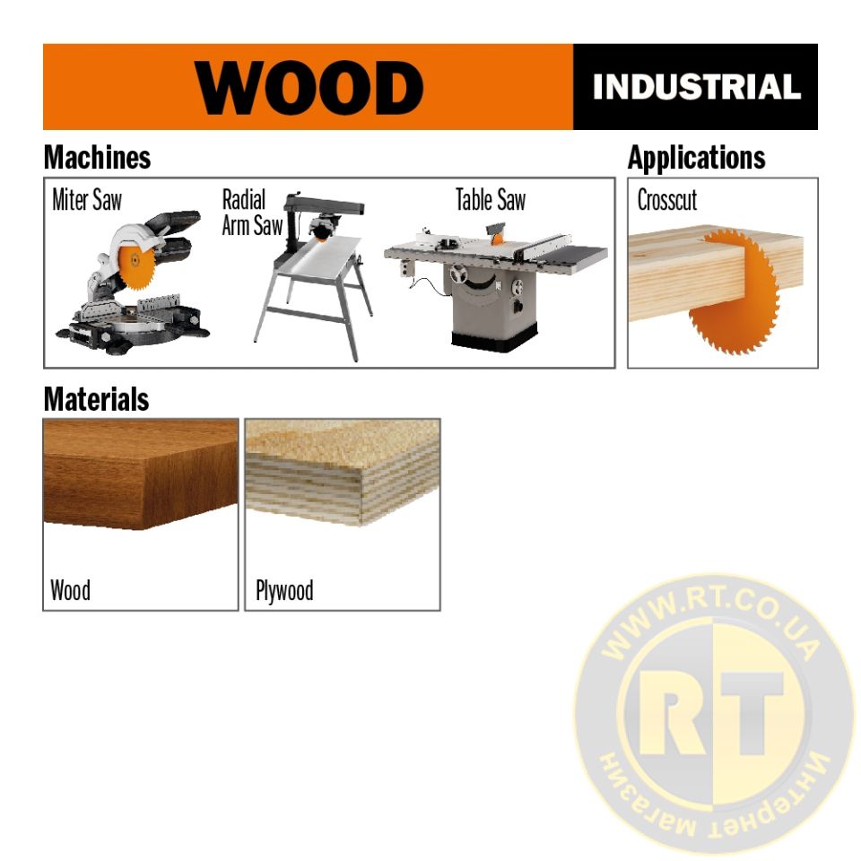Поєднання середньої кількості перемінно-скошених зубів, і негативного кута врізання -5° роблять цей пильний диск 294-ї серії, ідеальним для акуратного та ефективного розпилювання твердої та м'якої деревини, фанери, деревопохідних матеріалів, як вдовж, так і впоперек. Оснащені відверстиями для встановлення на інструмент різних виробників. Підходити для використання на ручних дискових, акумуляторних та торцювальних пилках.