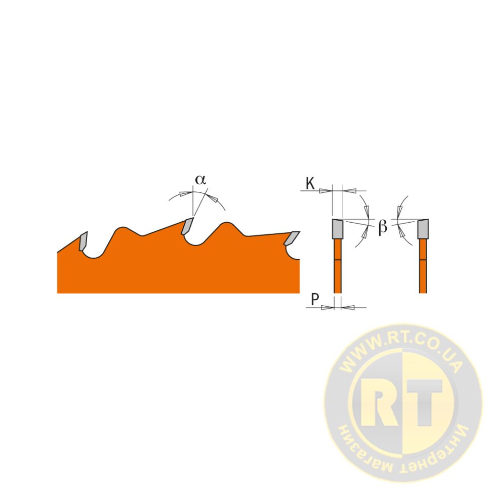Тип заточування зубів/Кут нахилу задньої поверхні пильного диска β5° ATB