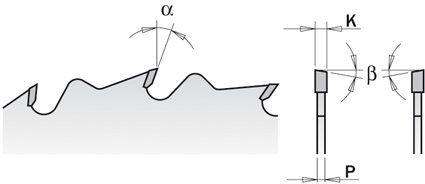 Тип заточування зубів/Кут нахилу задньої поверхні пильного диска β10° ATB