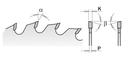 Тип заточування зубів/Кут нахилу задньої поверхні пильного диска β15° ATB