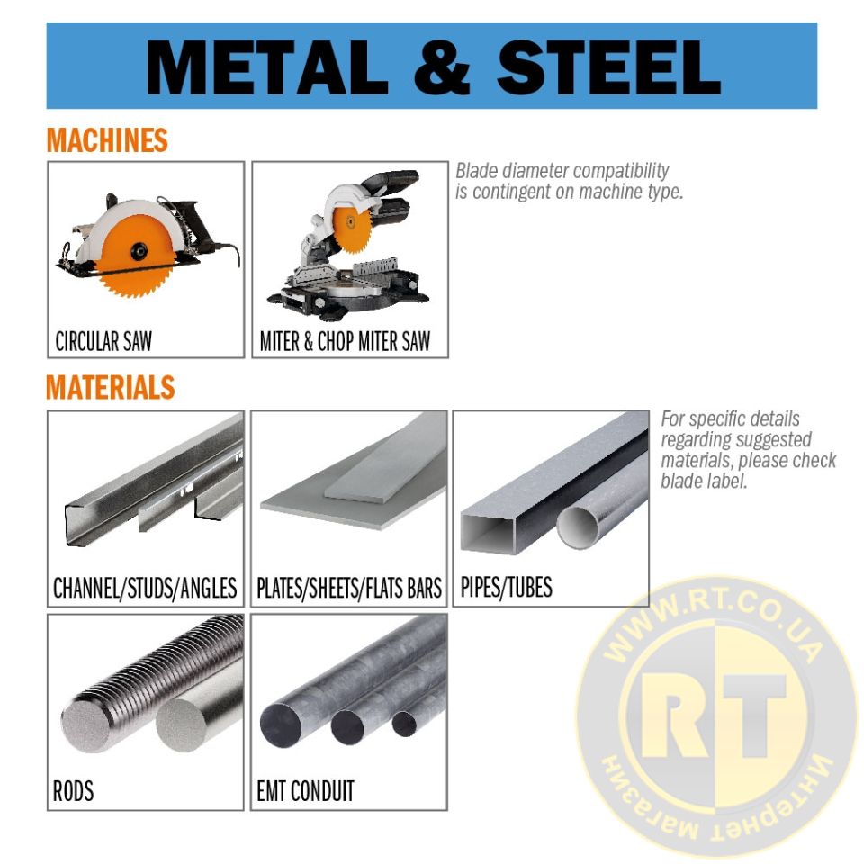 ЗАСТОСУВАННЯ: Розкрій листового металу, сендвіч-панелей, нарізка труб, профілів. Не рекомендується застосування лубрикантів.