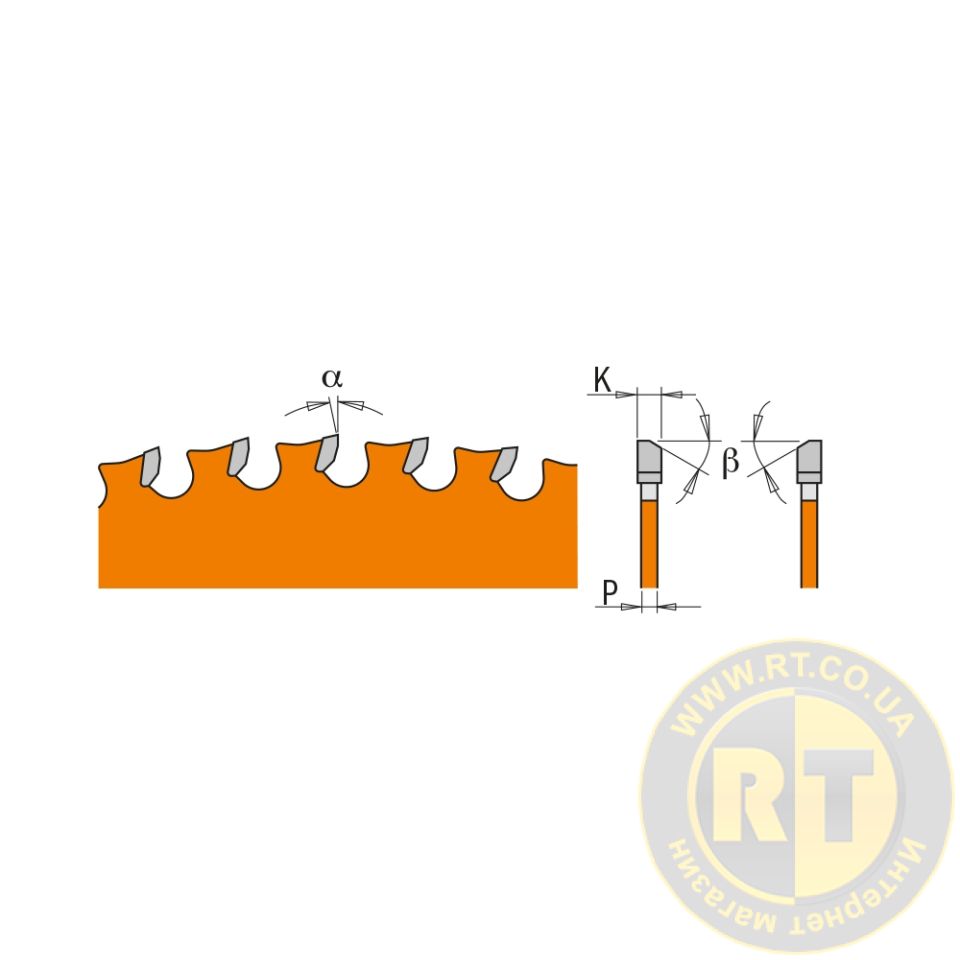 Тип заточування зубів/Кут нахилу задньої поверхні пильного диска β8° FWF