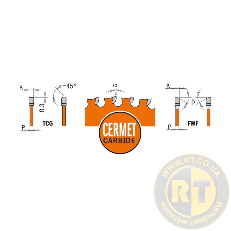 Тип заточування зубів/Кут нахилу задньої поверхні пильного диска β10° FWF