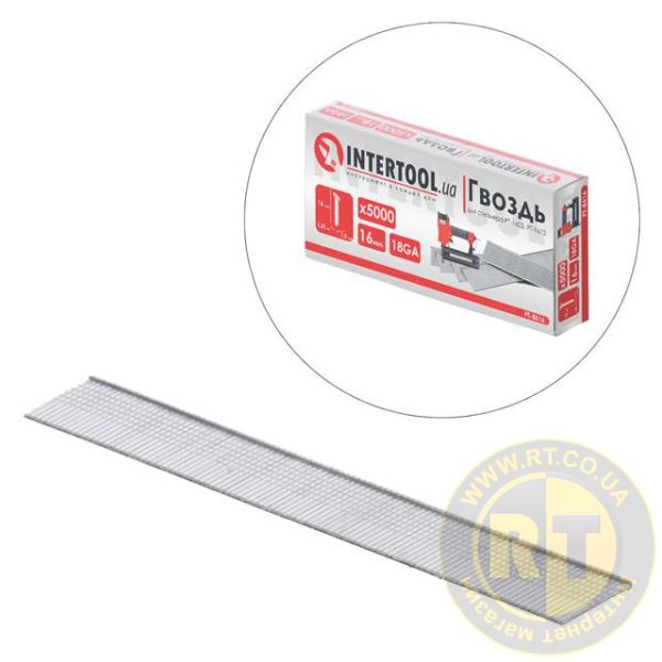 Цвях для степлера PT-1603, PT-1612, 16 мм, 18GA, 1,0×1,25 мм, 5000 од/упак INTERTOOL PT-8616