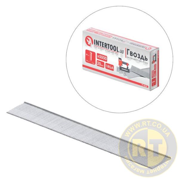 Цвях для степлера PT-1603, PT-1612, 20 мм, 18GA, 1,0×1,25 мм, 5000 од/упак INTERTOOL PT-8620